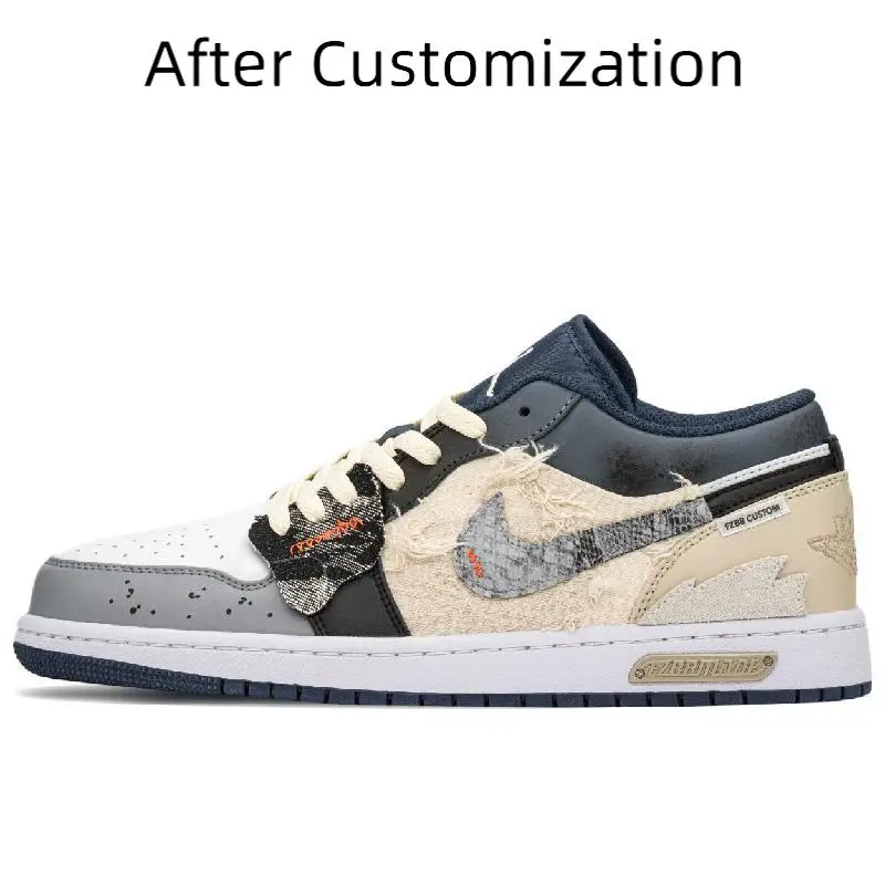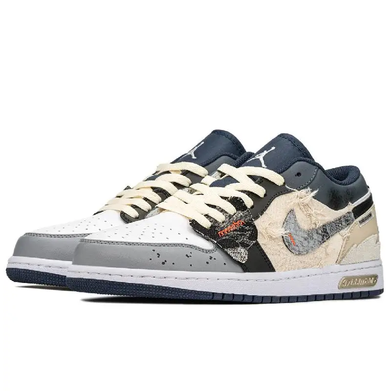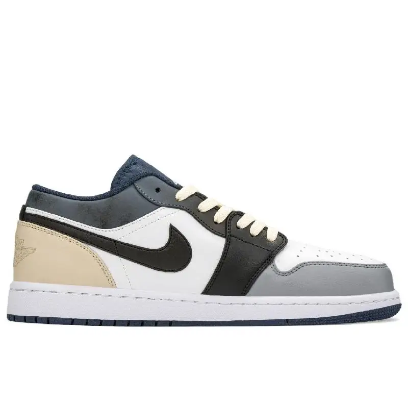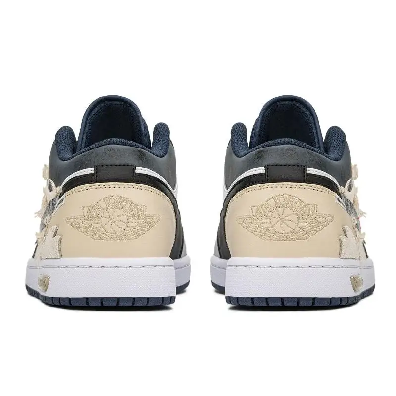 【Customize】Air Jordan 1 Vintage Basketball Shoes Men Low-top Black/beige Sneakers shoes 553558-414