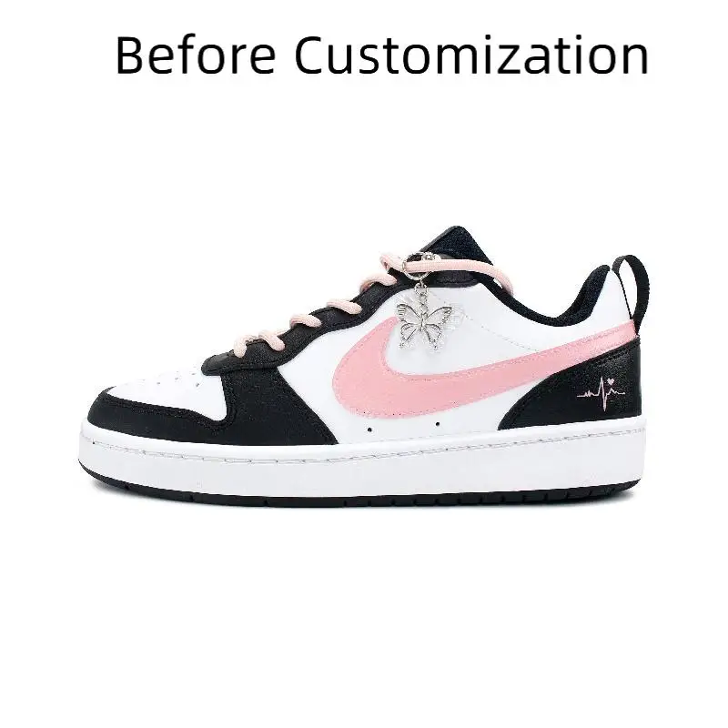 【Customize】Nike Court Borough 2 Skateboarding Shoes Women's Low-top Black/pink Sneakers shoes BQ5448-115