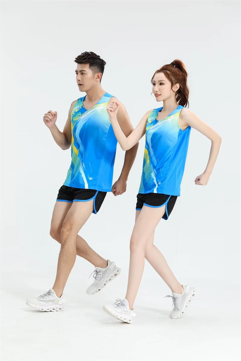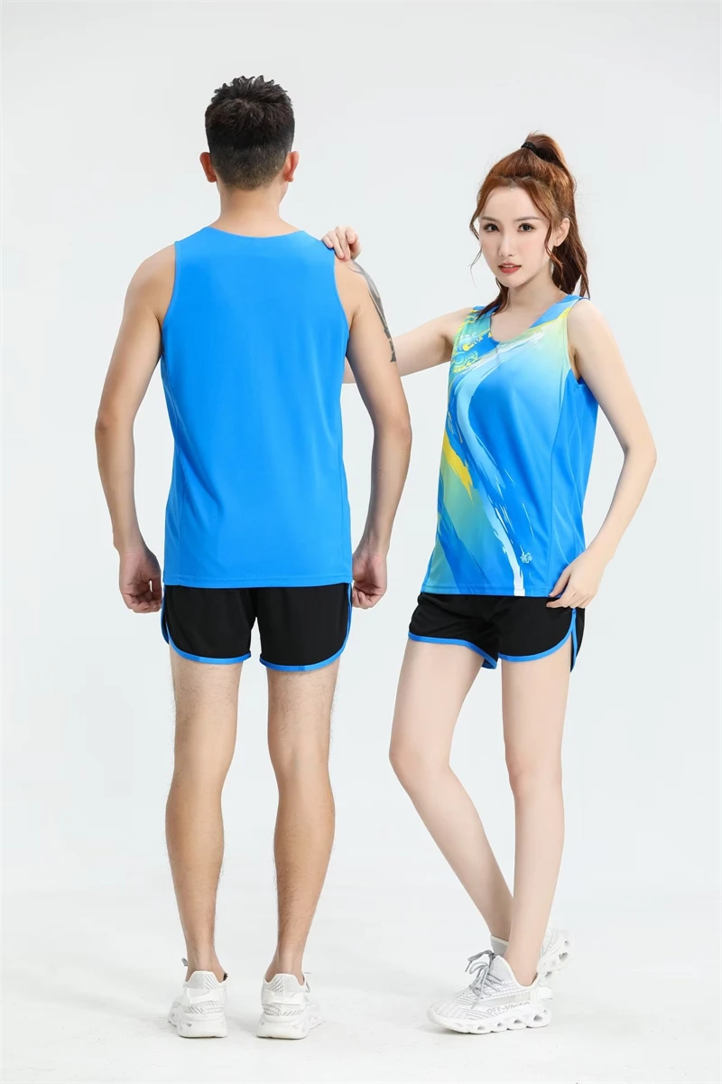 Fashion Men Women Vest+Shorts Competition Running Sets Track and field Sportswear Sprint Running suit Marathon Sports Clothes