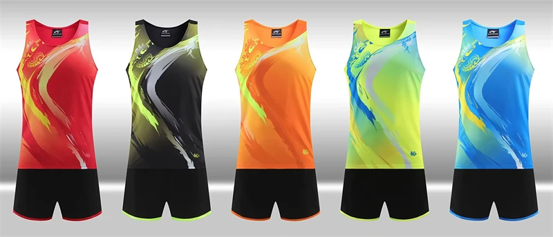 Fashion Men Women Vest+Shorts Competition Running Sets Track and field sportswear Sprint Running suit Marathon Sports Clothes
