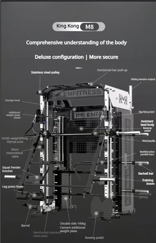 Gym Fitness Equipment Multi function Gym Equipment Smith Machine and Cross Cable Power squat rack M8 series Commercial/home