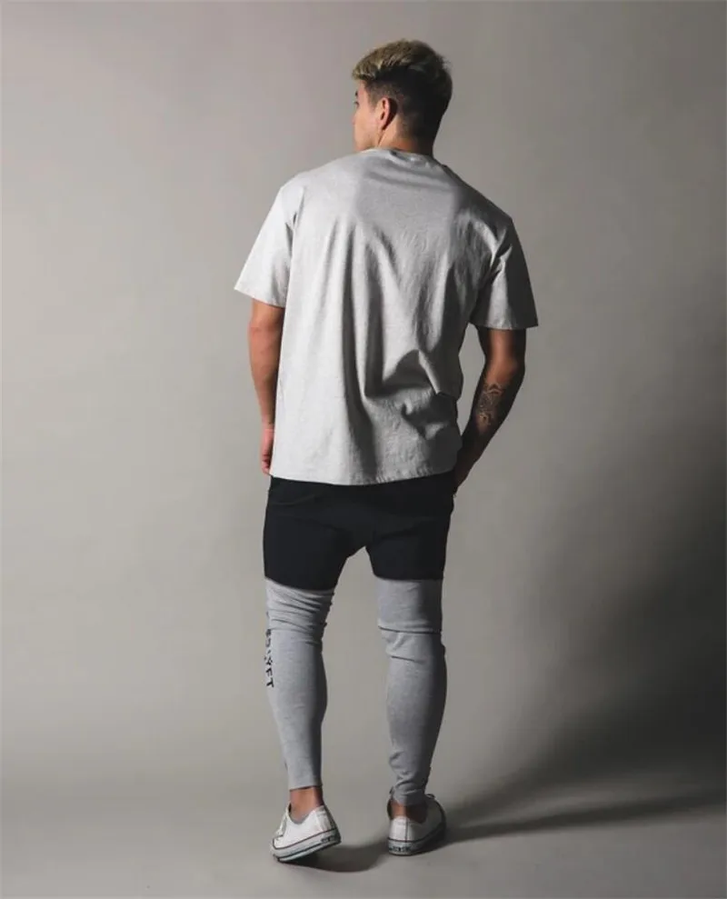JP&UK Brand Men T-shirt Casual Gym Short Sleeve Cotton Fitness T shirt Bodybuilding Workout Print Tees Tops Mens Fashio Clothing