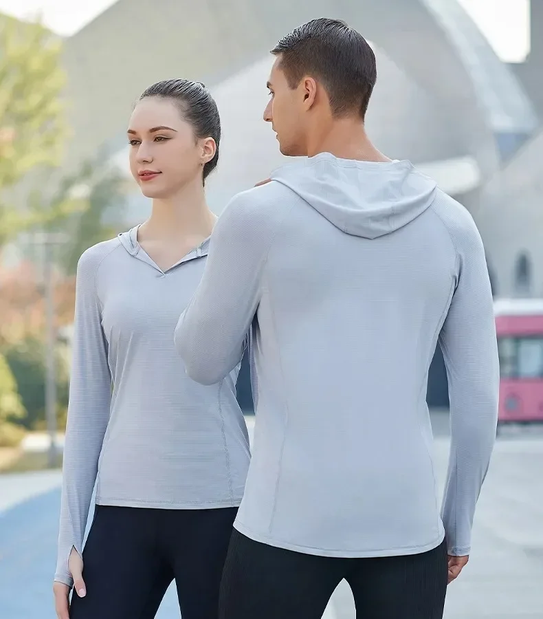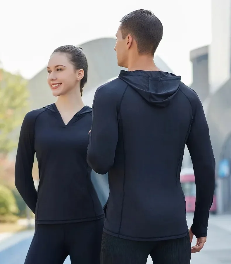 Man Long Sleeve T-shirt Hoodie Fitness Running Top Sports Shirt Woman Training Sweatshirts Hooded Gym Shirts Men's Sportswear