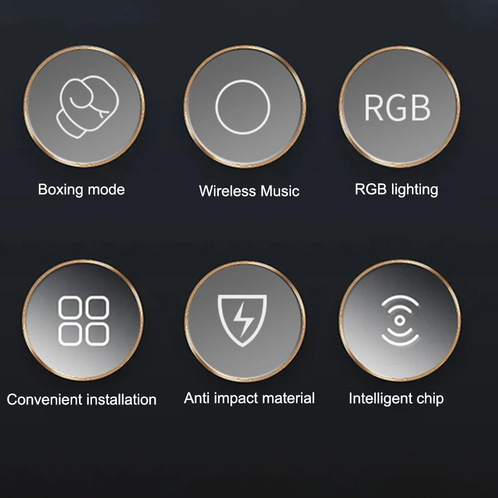 Feature: 1. Immersive Surround Sound and Dazzling Flashing Lights: Experience an immersive boxing training session with surround sound and dazzling flashing lights. The smart music boxing training machine enhances your workout atmosphere, making it more engaging and enjoyable. 2. Quick and Convenient BT Connectivity: Enjoy quick and convenient BT connectivity, target wall hanging sandbag allowing seamless connection to your smartphone. Easily play your favorite songs during your training sessions for a personalized workout experience. 3. Intelligent Sensing for Feedback and Reaction Training: The intelligent sensing of wall mounted music boxing machine feature provides feedback through sound and flashing lights with each punch. Improve your reaction time and enhance coordination as the targets randomly light up in response to your hits. 4. Easy Installation with Adjustable Positioning: Installing this training smart boxing punch is a breeze, thanks to its simple setup. With adhesive on the back, it can be easily mounted on any wall, indoor or outdoor, utilizing available space efficiently. 5. Fun and Interactive Family Workout Experience: Boost your reflexes and mental agility while getting fit and relieving stress. Engage in fun family workouts, target boxing pad fostering bonding and interactive moments with loved ones. Specification: Age: >6 Years Type: Sandbag Category Product Main Material: PU Package Size: 410.00 X 410.00 X 70.00 MM/16.14 X 16.14 X 2.75 In Gross Weight: 2500 G Note: Due To The Different Monitor And Light Effect, The Actual Color Of The Item Might Be Slightly Different From The Color Showed On The Pictures. Thank You! Please Allow 1-2 CM Measuring Deviation Due To Manual Measurement. ![]()